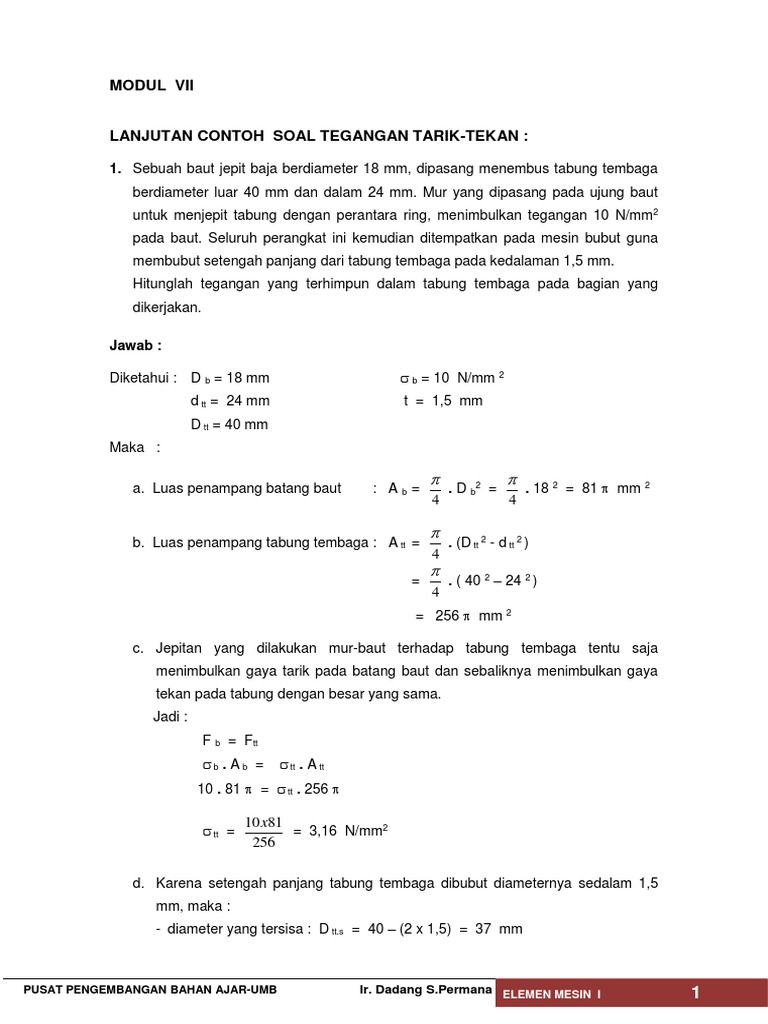 Lanjutan Contoh Soal Tegangan Tarik Tekan Pdf